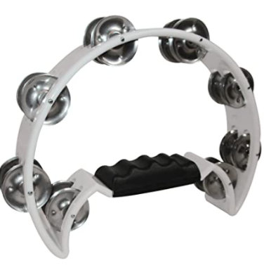 Half Moon Tambourine: You gotta have a tambourine! This is a solid model– we find this style of tambourine easier to hold and play than the traditional round ones.