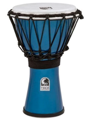 Djembe: This is the CORE of your percussion basket! The djembe has a wider range of tones, depending on how you hit it. This thing can hold its own in any jam. Plus this one comes in a ton of cool colors.